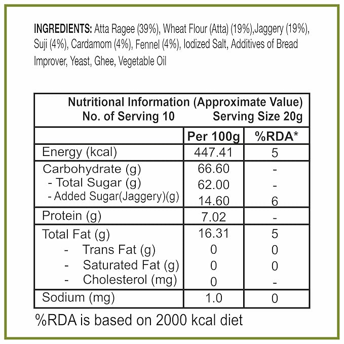 | Flavour | Gur Ragi Saunf Elaichi Rusk |