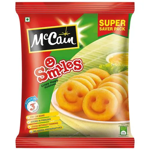 McCain Smiles are delicious mashed potatoes, seasoned and shaped into happy faces. Best enjoyed with Tomato Mayonnaise dip. Go ahead, take a bite and keep smiling!